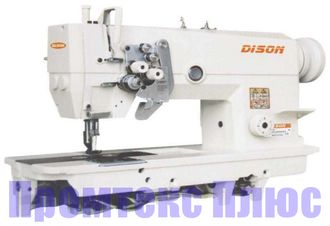 Двухигольная машина DISON DS-6845-003 челночного стежка с игольным продвижением и механизмом отключения игл, предназначена для стачивания деталей двумя параллельными строчками, при пошиве изделий из легких и средних материалов.