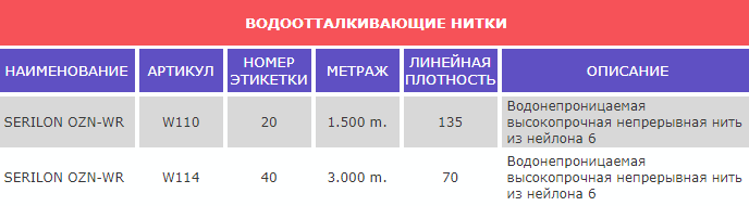 Водонепроницаемые нитки Ozn-Wr применяются при пошиве: